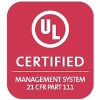 Certified under U.S. FDA 21 CFR Part 111, ensuring dietary supplement manufacturing meets Current Good Manufacturing Practice standards.